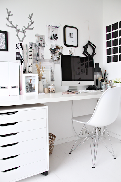 Od kiedy jestem mamą widzę jaki to przywilej móc pracować w domu. Jednak aby ta praca była wydajna, aby nie rozpraszały nas domowe sprawy, należy dobrze zorganizować sobie domowe biuro. Powinno być wygodne i funkcjonalne, ale również takie, w którym miło spędzamy czas. Kilka drobiazgów może sprawić, że praca stanie się przyjemniejsza. Od kiedy zaczęłam pisać blog stworzyłam sobie małe home office. A jak wygląda Wasze domowe biuro? A może dopiero szukacie pomysłów na własny kąt do pracy w domu. Zatem zapraszam.